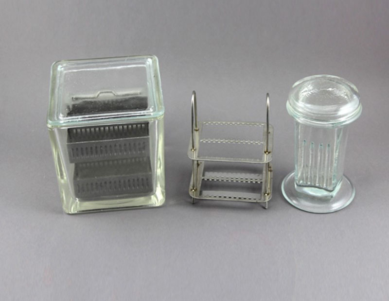 用于醫(yī)療衛(wèi)生、醫(yī)學(xué)院、防疫站、大專院校、科研單位,在研究細(xì)菌、細(xì)胞時(shí),對(duì)涂有痰液、勃液、分泌液、濃汁等細(xì)菌標(biāo)本制片或動(dòng)植物標(biāo)本制成的載玻片或蓋玻片進(jìn)行染色時(shí)作貯存染色液體,浸胞載玻片或蓋玻片的染色器具。
